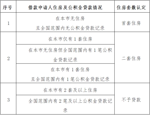 (4)借款申请人夫妻名下已有的住房公积金个人住房贷款(含政策性贴息贷款)记录及本市住房情况,应符合下表要求;同时,对于离婚日期为2017年3月24日(含)以后的借款申请人,在离婚一年内申请住房公积金个人住房贷款的,按二套房贷款政策执行。